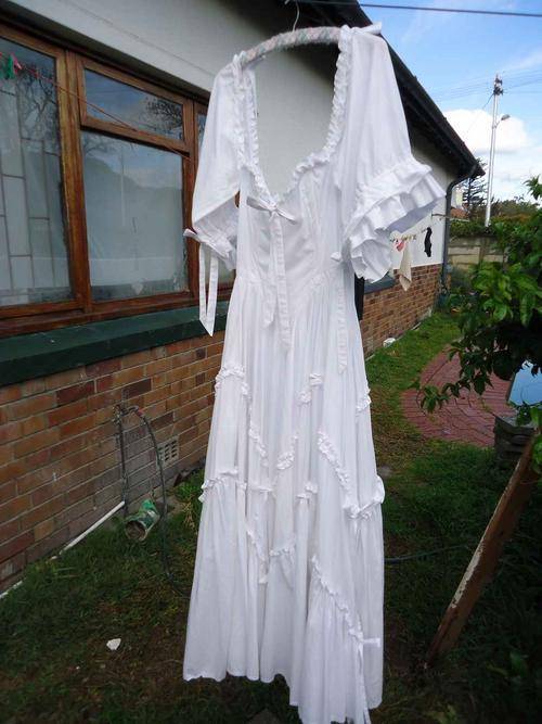 Beautiful Laura Ashley Gypsy Dress. Full length. 100% cotton. Size 12. Full of bows soft and clean. Tiny stain marks on sleeve hardly noticible. Neck and shoulder line might need a new drawstring.