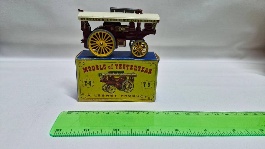 In good condition, both the engine and its original box have been well cared for, preserving the nostalgic charm and collectible value of this piece. The box itself, also in good condition, adds to its appealoffering a rare glimpse into the vintage packaging styles of the era. A wonderful find for any diecast enthusiast, this Showmans Engine is a true tribute to mechanical elegance and timeless toy design.