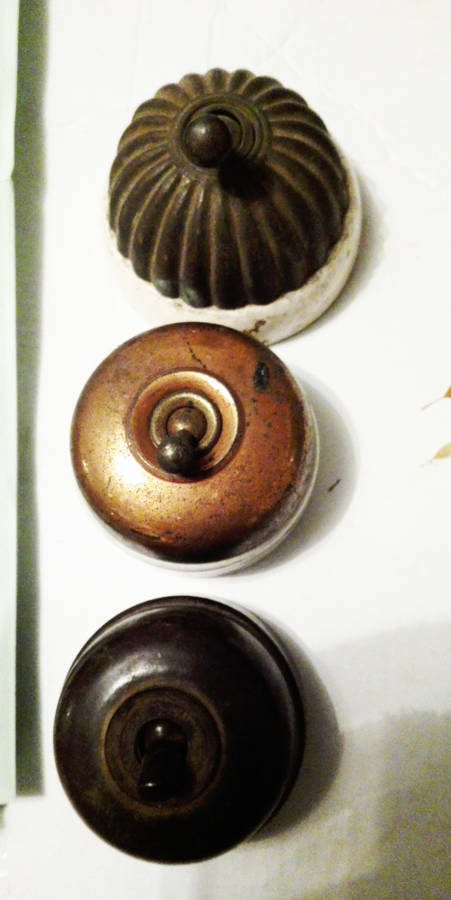 IN THIS LOT THERE ARE 3 SWITCHES, 2 ARE BRASS AND CERAMIC AND ONE IS BAKELITE. CONDITION AS PER SCAN.