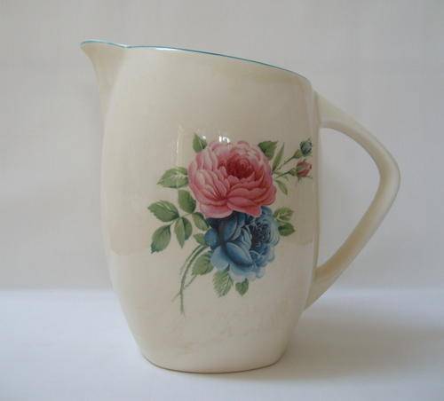 transfer-printed roses and green leaves, blue hand-painted detail.