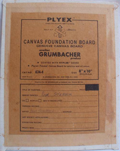VINTAGE: LOVELY LITTLE ORIGINAL OIL - SIGNED BY ARTIST, PAM STEPHEN 'BLUE GUM TREES' OIL ON CANVAS BOARD - UNFRAMED. SIZE: 25CM X 20CM.