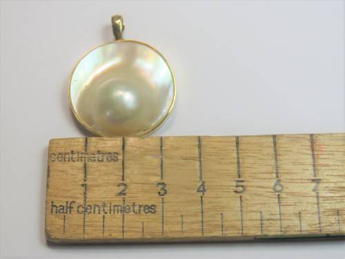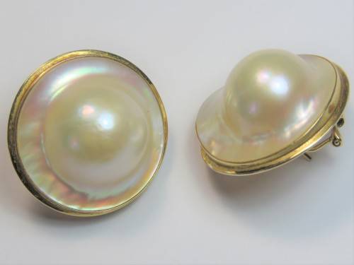 Vintage Mabe pearl and 14kt gold set of earrings plus pendant - Total weight including pearls 20.9g