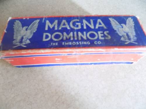 Box has been cello taped to hold it together - dominoes in good condition and set is complete