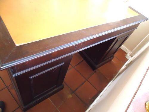 Vintage Mahogany Study Desk with Leather inset on top and 9 x Drawers with Brass Handles, measuring 142cm Length x 78cm Height x 61cm Depth. In Excellent condition. A piece of furniture to be proud of in your home or office. Buyer to arrange own transport/collection.