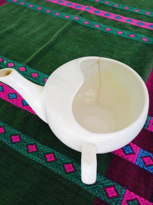 Vintage invalid feeding cup made by "Maling" England. From the stamp at the bottom it appears it's from the 30's. There is an age crack in it as pictured, but no chips - it's smooth to the touch along the rim. Wonderful item!