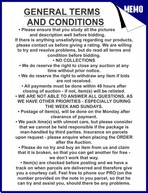 Do view our other AUCTION and BUY NOW items here: http://www.bidorbuy.co.za/seller/2478512/blommetjieougoed