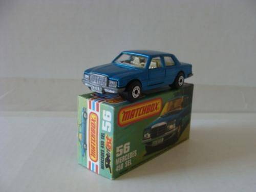ON AUCTION IS A HIGHLY SOUGHT AFTER VINTAGE MATCHBOX SUPERFAST #56 MERCEDES 450 SEL . THIS 34 YEAR OLD BEAUTY IS IN MINT CONDITION . THIS MODEL COMES IN ITS BOX WHICH IS IN MINT CONDITION