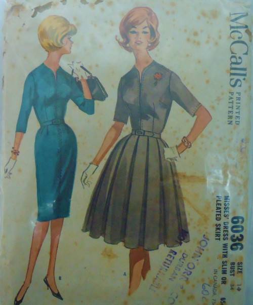VINTAGE McCALL's 6036 DRESS-FITTED BODICE-SLIM SKIRT BOX PLEATED SKIRT SIZE 14 BUST SEWING PATTERN