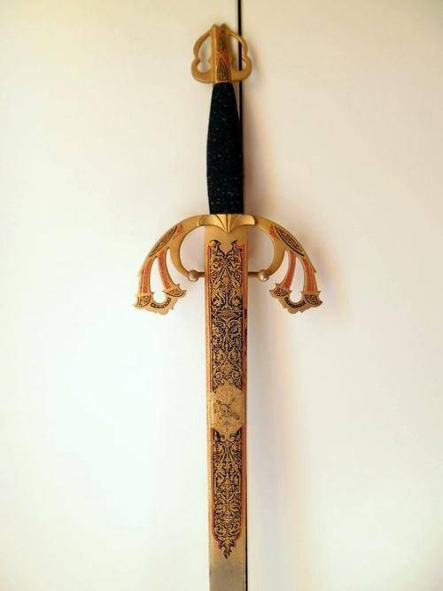 The Tizona and Colada Swords belonged to the Castilian knight Rodrigo Diaz de Vivar, known as "El Cid Campeador" in the 11th century. He was the prototype of the knight and a loyal vassal who took part with his king, Alphonse VI, in the conquest of Toledo. Subsequently, El Cid conquered the city, and kingdom of Valencia (which he ruled there until his death in 1099) from the Arabians (Moors). El Cid was a great war hero, a superior and extremely successful soldier of fortune, who apparently never lost a battle. To this day, Rodrigo Diaz de Vivar is known as a hero of Christian Spain, due to his excellent acheivements in the the Reconquest of Spain from the Moors. His title, El Cid Campeador, derives from: "El Cid" , a Moorish title of respect, from Arabic al sayyid "Lord"; "Campeador" is Spanish for "Champion".