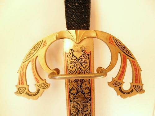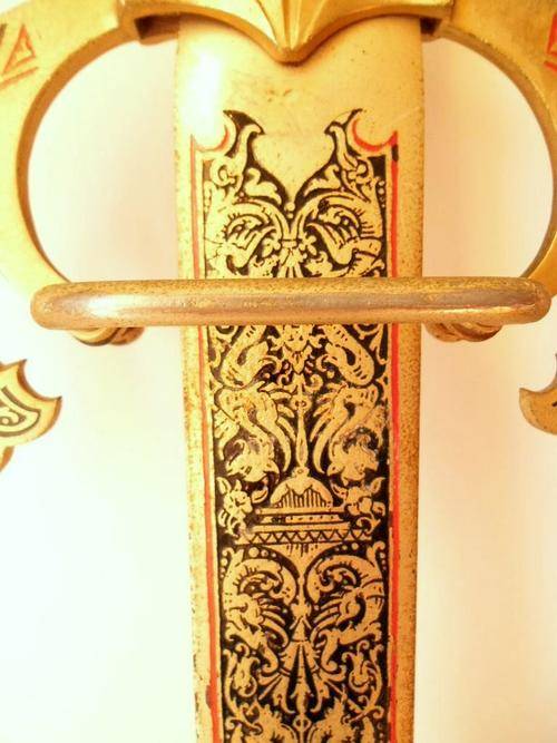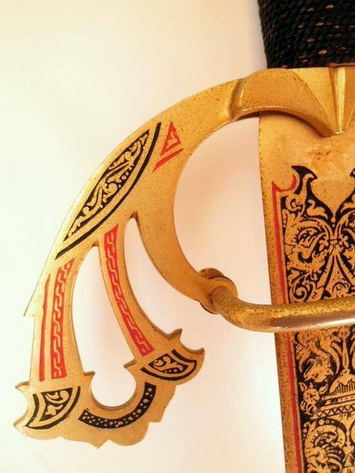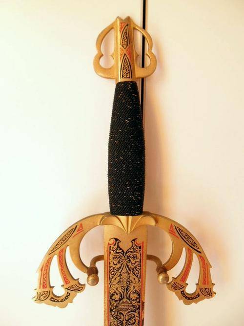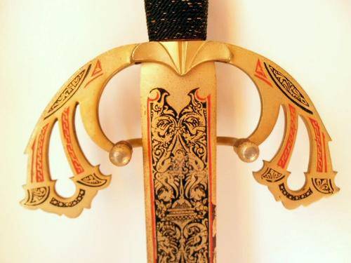 VINTAGE MEDIEVAL *TOLEDO SPAIN* EL CID TIZONA SWORD WITH GILT PART & ENAMELLED ENGRAVINGS