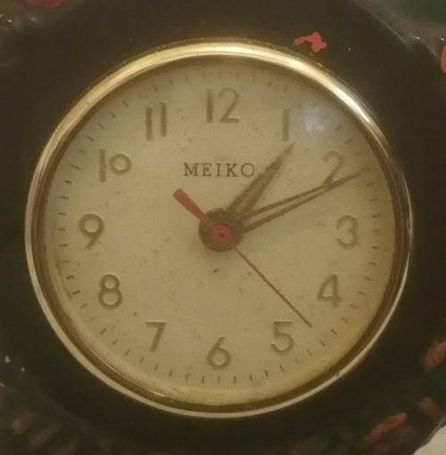 Rare find! Beautiful Vintage Meiko Clock in working Condition with wind up Magnesium. 18cm x 21cma.