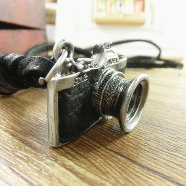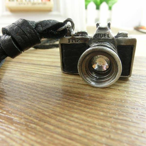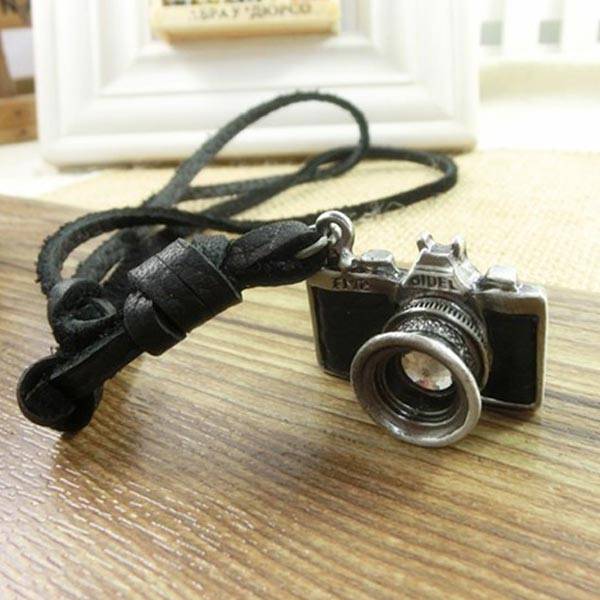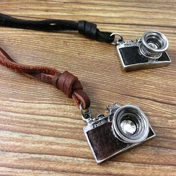 Vintage Men Camera Leather Necklace Retro Handmade Alloy