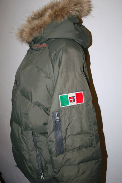 Vintage Mens Khaki Down Feather Hooded Bomber Jacket Size:L
