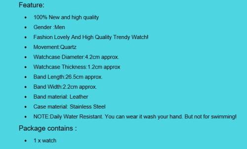 Vintage Men's Waterproof Watch Date Leather Strap Sport Quartz Army Watch Black