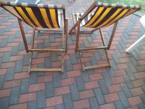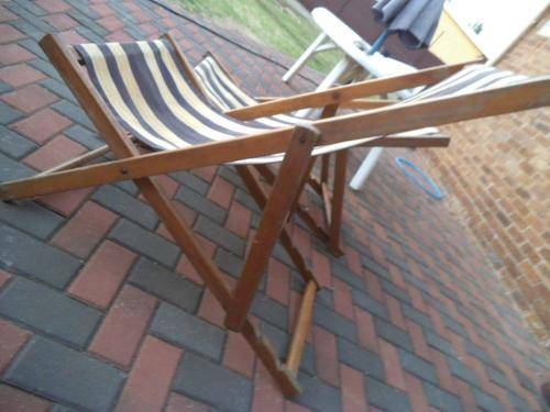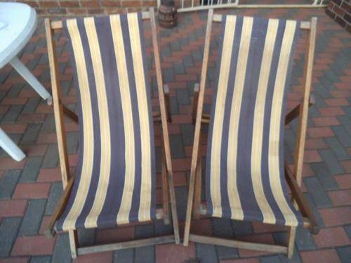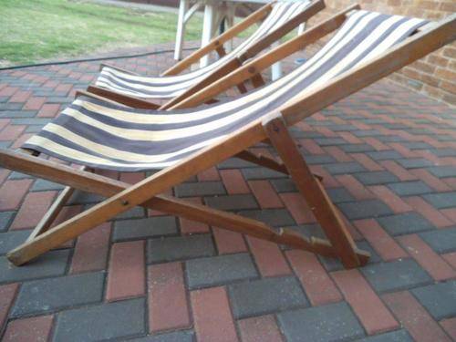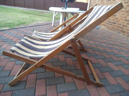 2 vintage meranti pool loungers with 3 different recline-able positions. Chairs still in good condition. Fold down for easy storage. Collection only in Springs.