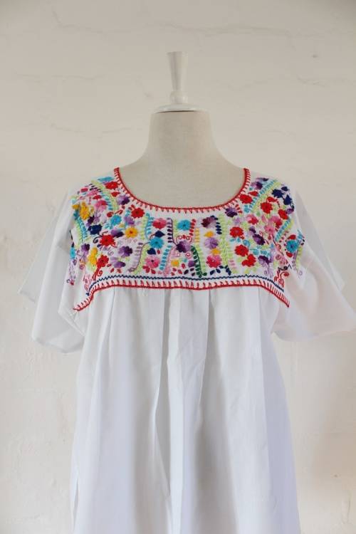 VINTAGE MEXICAN STYLE FLORAL EMBROIDERED WHITE TOP BLOUSE SHIRT - SIZE LARGE