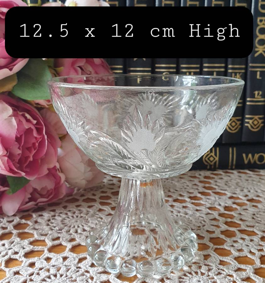 Vintage mid-century fruit bowl/candy bowl featuring intricate floral decor and elegant leg.