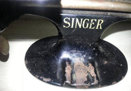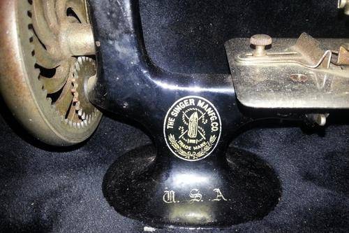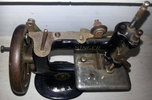 Vintage Singer miniature children's sewing machine. Sewing machine IS crank style black finish. Circa1920. Marked "Singer" Please see photos for full description as there is some wear