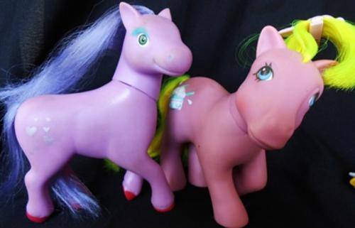 This little Pony with a Sundae mark was made for Hasbro copyright 1983.12 cm high in good secondhand condition + one other pony!