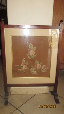 Vintage Oak Fire Screen with Tapestry inlay covered with glass, slight  crack in wood on top please see pictures.