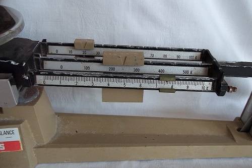 Vintage Ohaus triple beam precision balance scale. This old scale is 43cm x 15cm, and has a triple beam balance arm. It is in working condition, and can weigh small amounts very accurately. All the weights are attached to the balance arm. The scale is old, but in very good working condition. Lovely vintage scale for the collector.