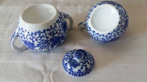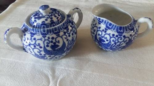 Vintage Oriental Blue and white Creamer and sugar pot. Collectible Porcelain. no chips or cracks