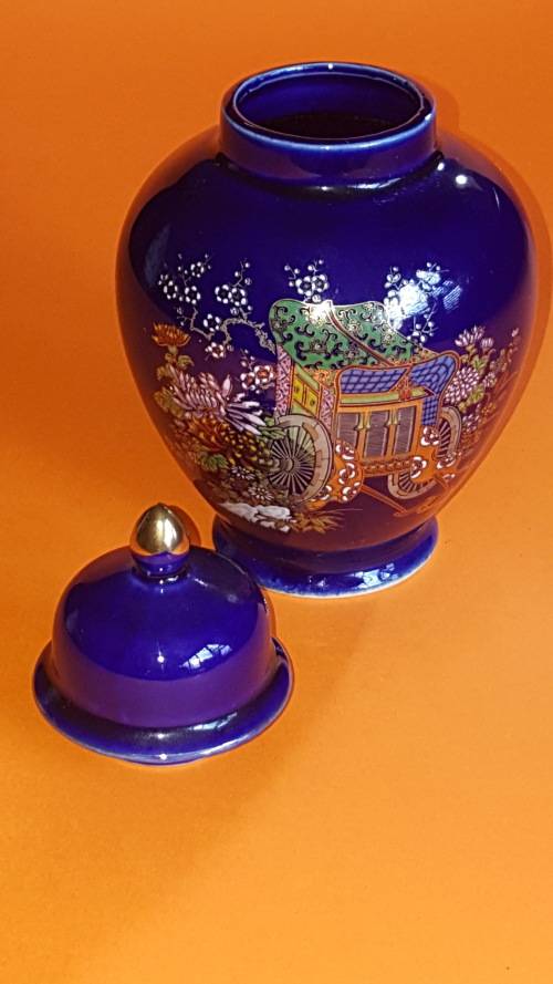 Vintage Oriental Cobalt Blue flower Cart Ginger Jar