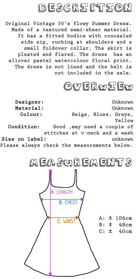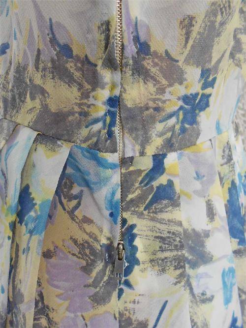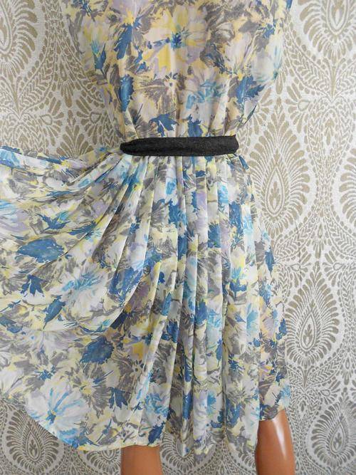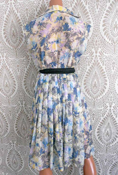 VINTAGE*Original 50's Dress* Pastel Watercolour Allover Floral print*Pleated flared skirt