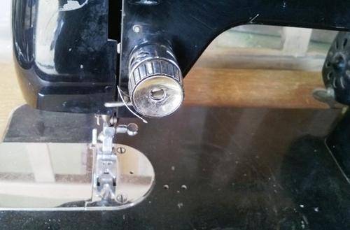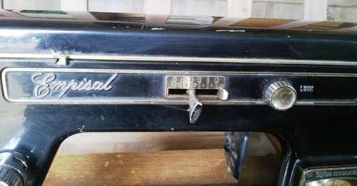 Vintage, Original Black EMPISAL Deluxe Goldline Sewing Machine. Good working condition.