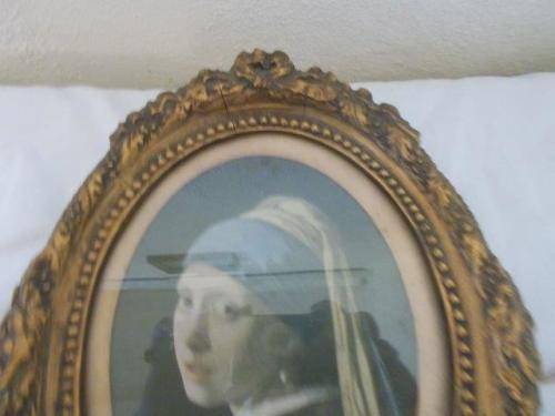 Stunning oval vintage frame with vintage print of a woman behind a glass the frame has got some cracks noted in the wood but its still so lovely item in good used condition