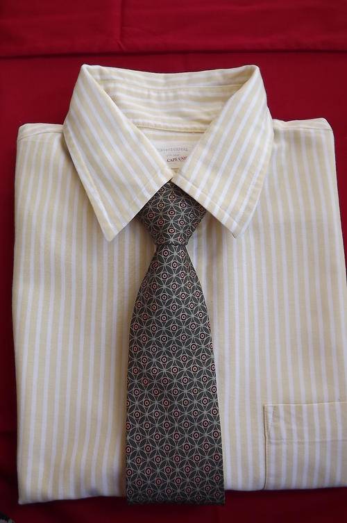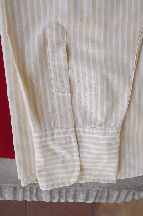 Vintage Oxford Long Sleeve Men's Shirt from Cape Union Mart in size Large - 100% Cotton - Soft Lemon Stripe Colour - this is a stunning shirt in heavy fabric - can use formal or casual - we include the Yves Saint Laurent All Silk Tie which is a perfect match - very good condition