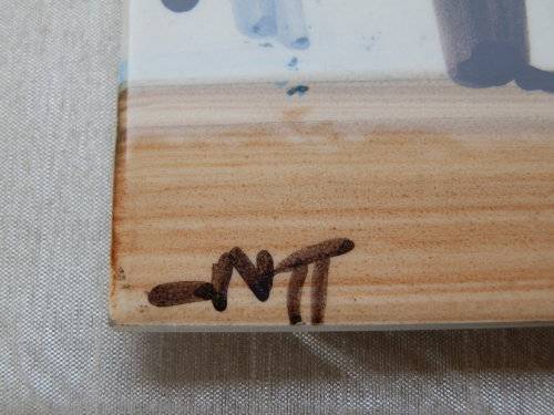 Old painted tile, signed and in good condition, no cracks or chips. The size is 15.1 x 15.1 cm.