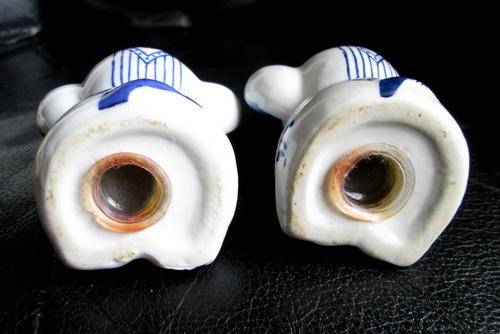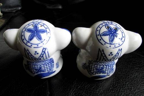 A lovely vintage pair of blue and white porcelain elephant salts, in good condition, 6.5 cm each height.
