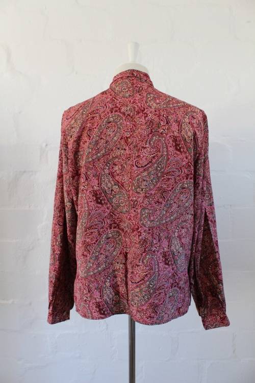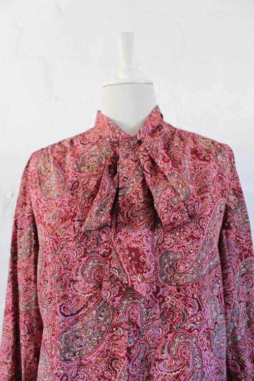 VINTAGE PAISLEY PINK PRINT PUSSYBOW LONG SLEEVE BLOUSE SHIRT TOP - SIZE 16