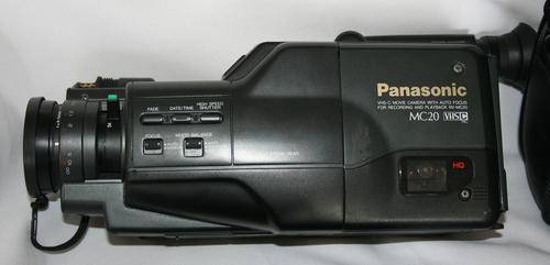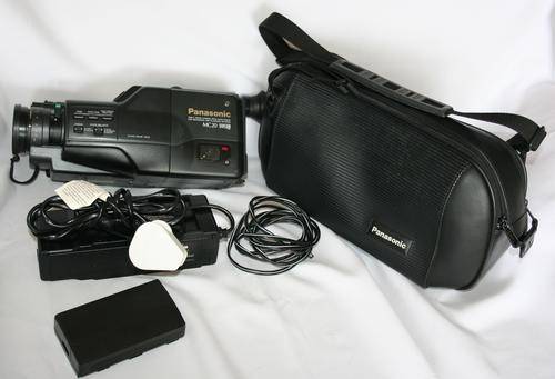 VINTAGE PANASONIC NV-MC20 ANALOGUE VIDEO CAMERA. VHS COMPACT (VHS-C) FORMAT . NOT TESTED -- SOLD AS NOT WORKING . IT CAN POSSIBLY BE USED FOR SPARES. THE MICROPHONE SPONGE IS GONE. IT COMES WITH 2 BATTERIES, BATTERY CHARGER AND CARRY BAG. THE BAG IS IN GOOD CONDITION.
