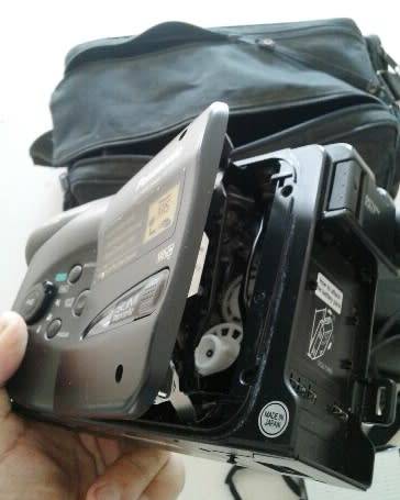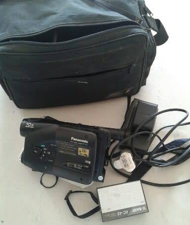 VINTAGE PANASONIC S-VHS-C VHS MOVIE CAMERA ACCESSORIES & BAG!FAULTY CASSETTE CASING GOOD FOR SOMEBODY IN KNOW/ SPARES