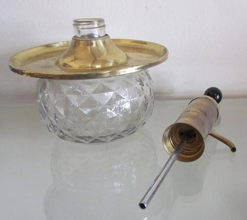 Vintage Park Sherman Glass & Brass Pump-action Liqueur / Liquor Carousel Decanter / Dispenser.