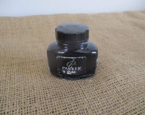Vintage Parker glass bottle black Parker Quink fountain pen ink Made in France 57ml Full bottle