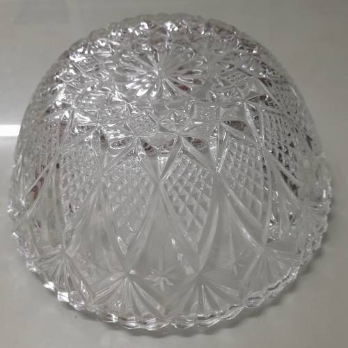 | This beautifully designed glass bowl is in good condition with no chips or cracks. Marked on the base "PASARI" and "INDONESIA". Stunning centerpiece! |