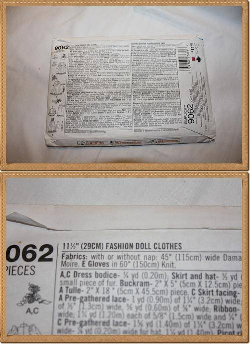 VINTAGE PATTERN :SIMPLICITY CRAFTS 9062 FOR 29CM DOLL