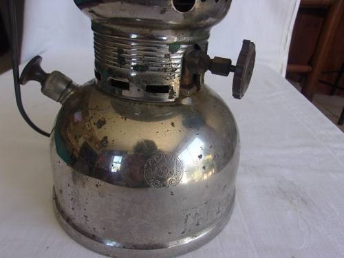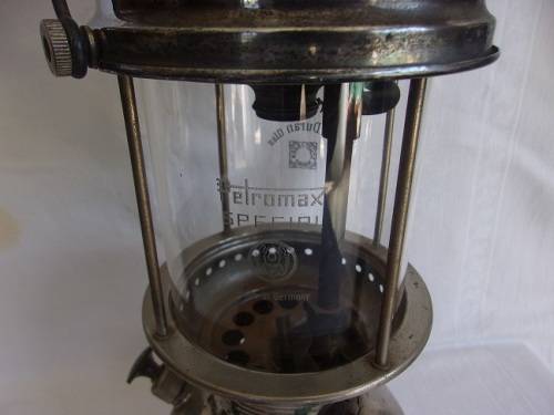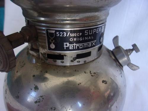Vintage Petromax 523 500CP Super pressure lantern. This old pressure lantern would have been produced in the 1960s. It is a 500CP lantern, and is branded "Original Petromax, made in Germany". It is numbered 2463 on the bottom. The lantern is in good (untested) condition for its age - glass shade is clean. Great buy for the collector. Please view photographs as they form part of the description.