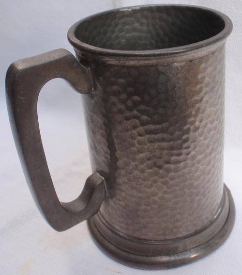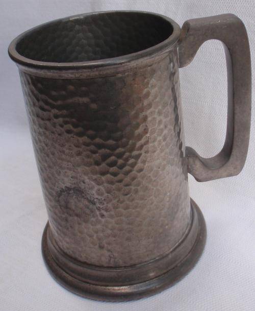 VINTAGE: HEAVY, SOLID PEWTER TANKARD. 'CAMEO' MADE IN SHEFFIELD, ENGLAND. HAND BEATEN PEWTER. LOVELY OLD ITEM MADE IN AN ERA WHEN THINGS WERE MADE TO LAST MANY LIFE TIMES - AND THIS HAS STOOD THE TEST OF TIME! IN SOUND CONDITION WITH A COUPLE SMALL DENTS - INEVITABLE IN A BAR!!! SIZE: HEIGHT 13.5CM X DIAMTER AT BASE 10.5CM. NO PERSONALIZED ENGRAVINGS.