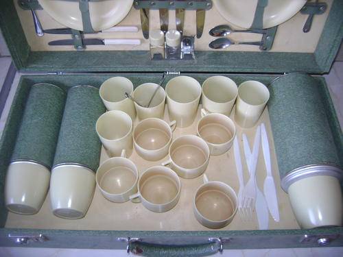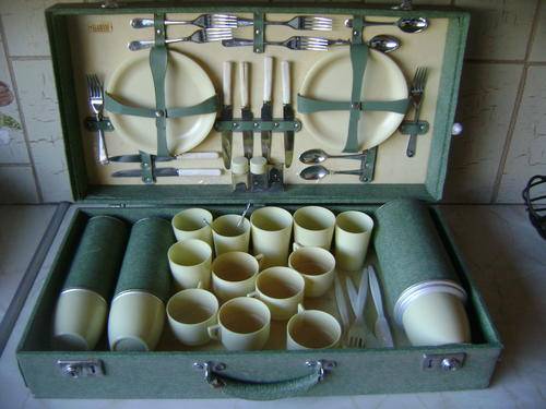 THIS VINTAGE PICKNICK CASE WITH CONTENTS - SIRRAM MADE IN ENGLAND SINCE 1895