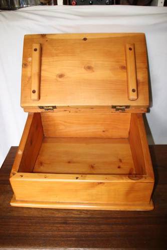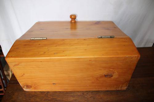 For auction is this bread bin made of pine. It measures 47 cm long and 22 cm high. Please have a look at the pictures as they form part of the description. Packaging and postage is R75 alternatively it can be collected for free in Krugersdorp.
