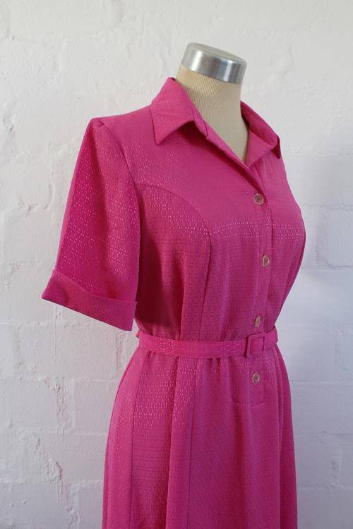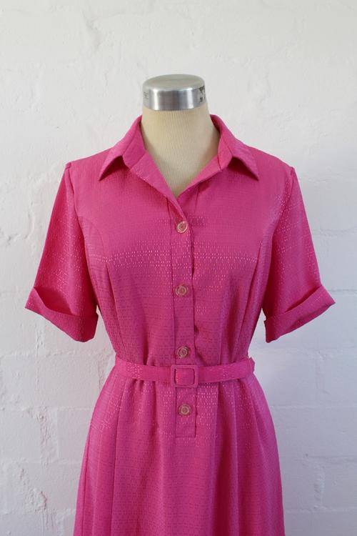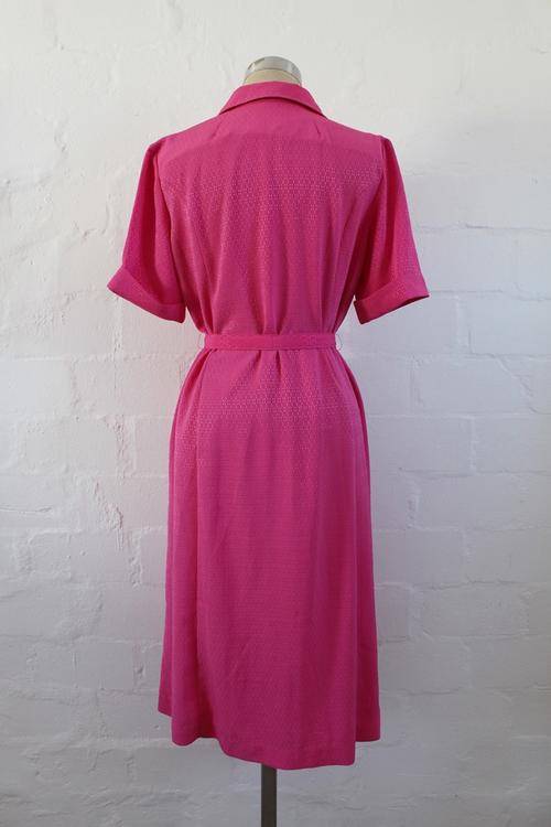 VINTAGE PINK BELTED DAY DRESS - SIZE 14