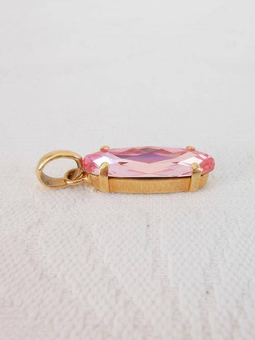 VINTAGE PINK FACETED OVAL STONE CRYSTAL GOLD PLATED PENDANT FOR NECKLACE