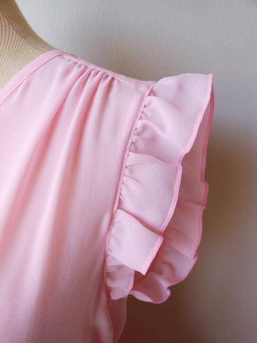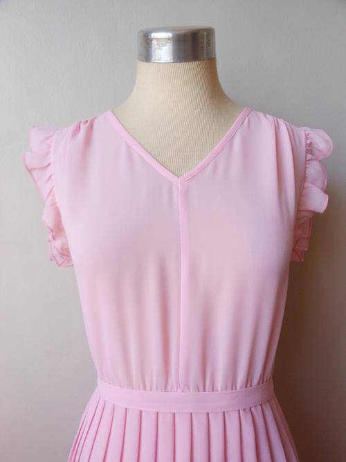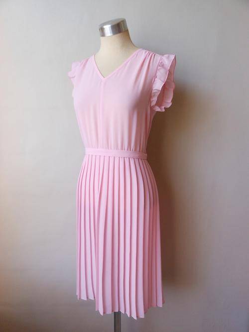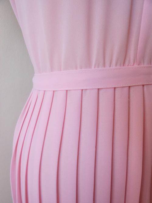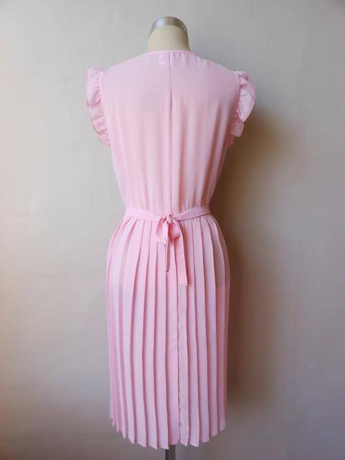 VINTAGE PINK PLEATED RUFFLE TIE WAIST DRESS - SIZE 14