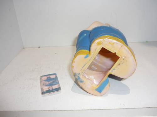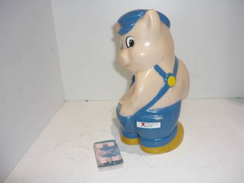 VINTAGE PLASTIC PIGGY BANK =VOLKSKAS BANK- 19 CM TALL-NO KEY