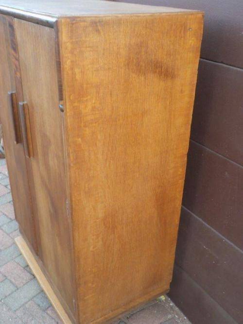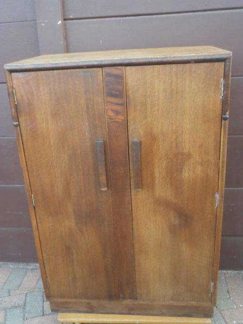 On auction we have this vintage plywood armoire wardrobe. Dimensions - W = 800mm, H = 1180mm, D = 470mm. Please view photo's closely as they form part of the description and general condition of the item. NOTE: Collection only in Springs, Gauteng.