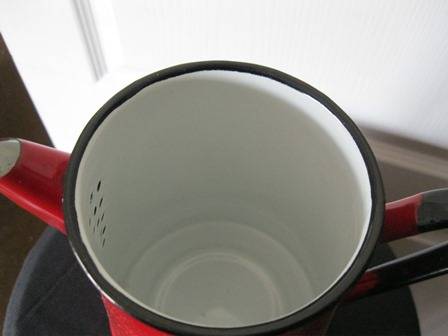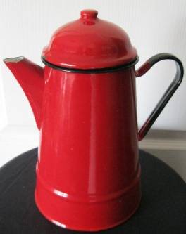 Vintage Red Polish Enamel Coffee pot in mint condition, the person whose collection this was only displayed these items they were not used at all, the coffee pot is 26cm high x 14cm dia.